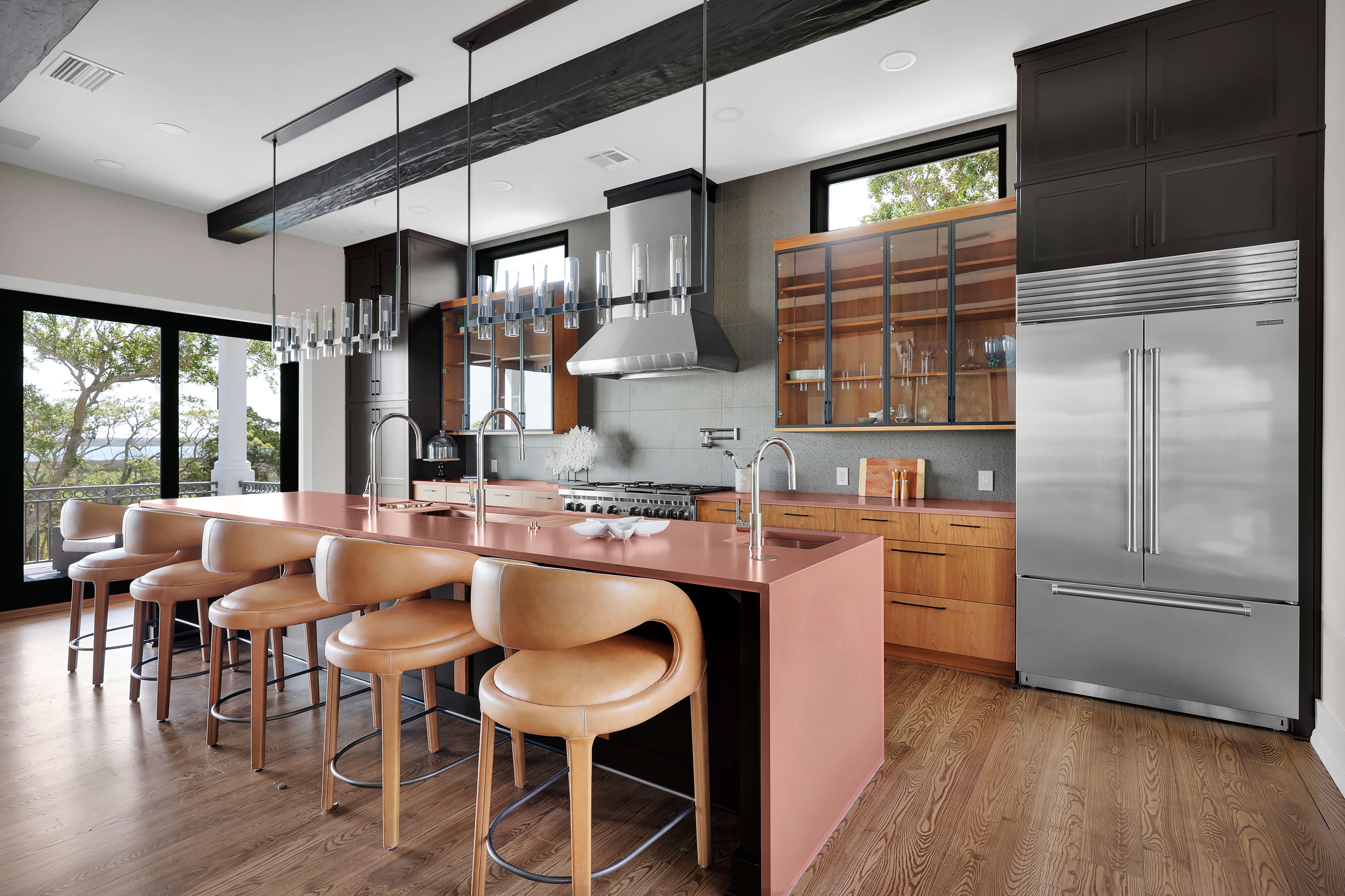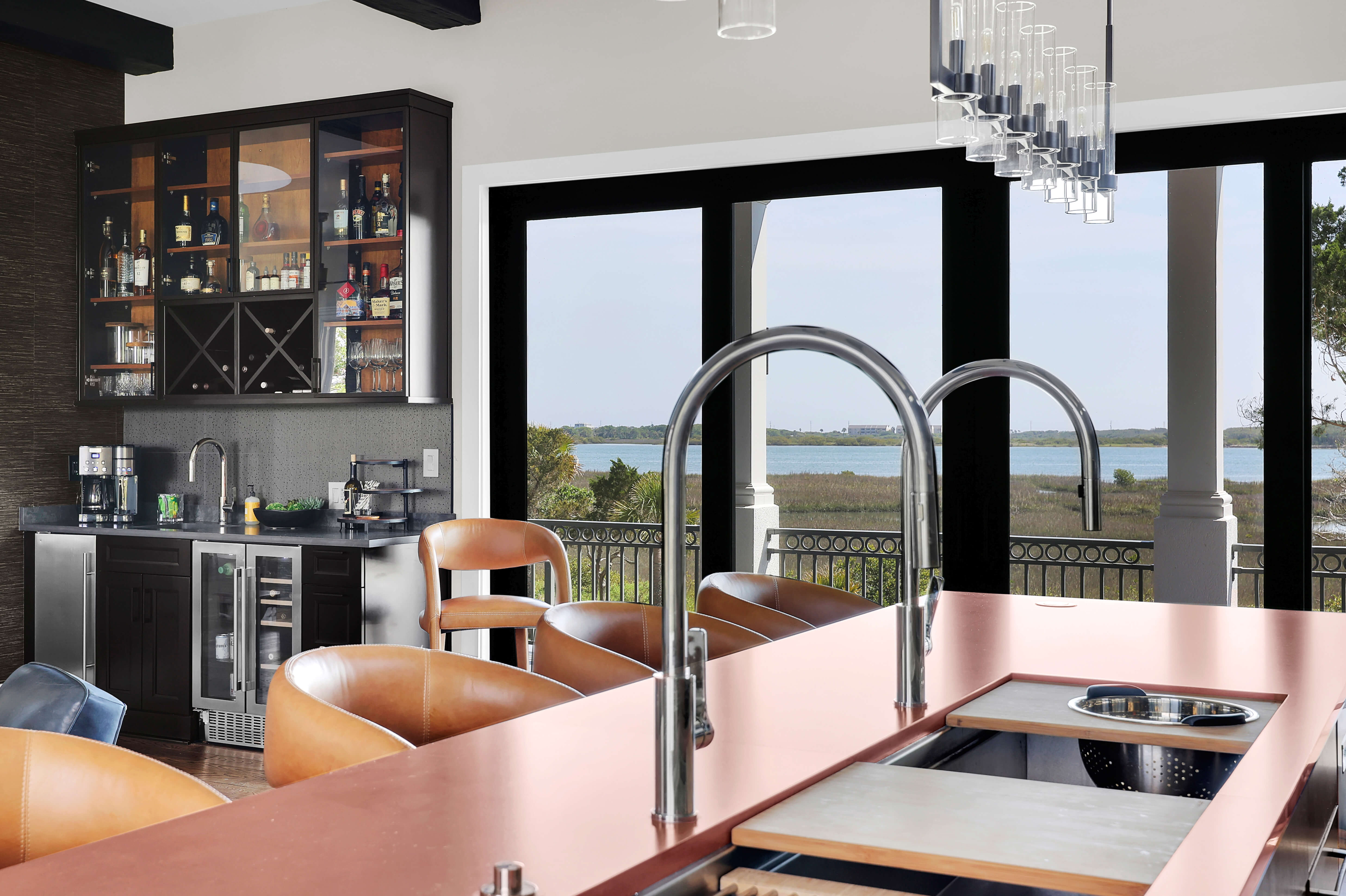 Another trend that I have enjoyed seeing in design is a single large sink with two faucets. Sometimes it’s hard to add additional plumbing to a remodel for a secondary sink. Adding a second faucet to a larger sink can be a game-changer when it comes to different tasks in the kitchen. Busy families can use one faucet for cleaning food while the other can be used for cleaning hands and dishes, and no one is fighting over a single faucet. Sometimes it just makes sense!