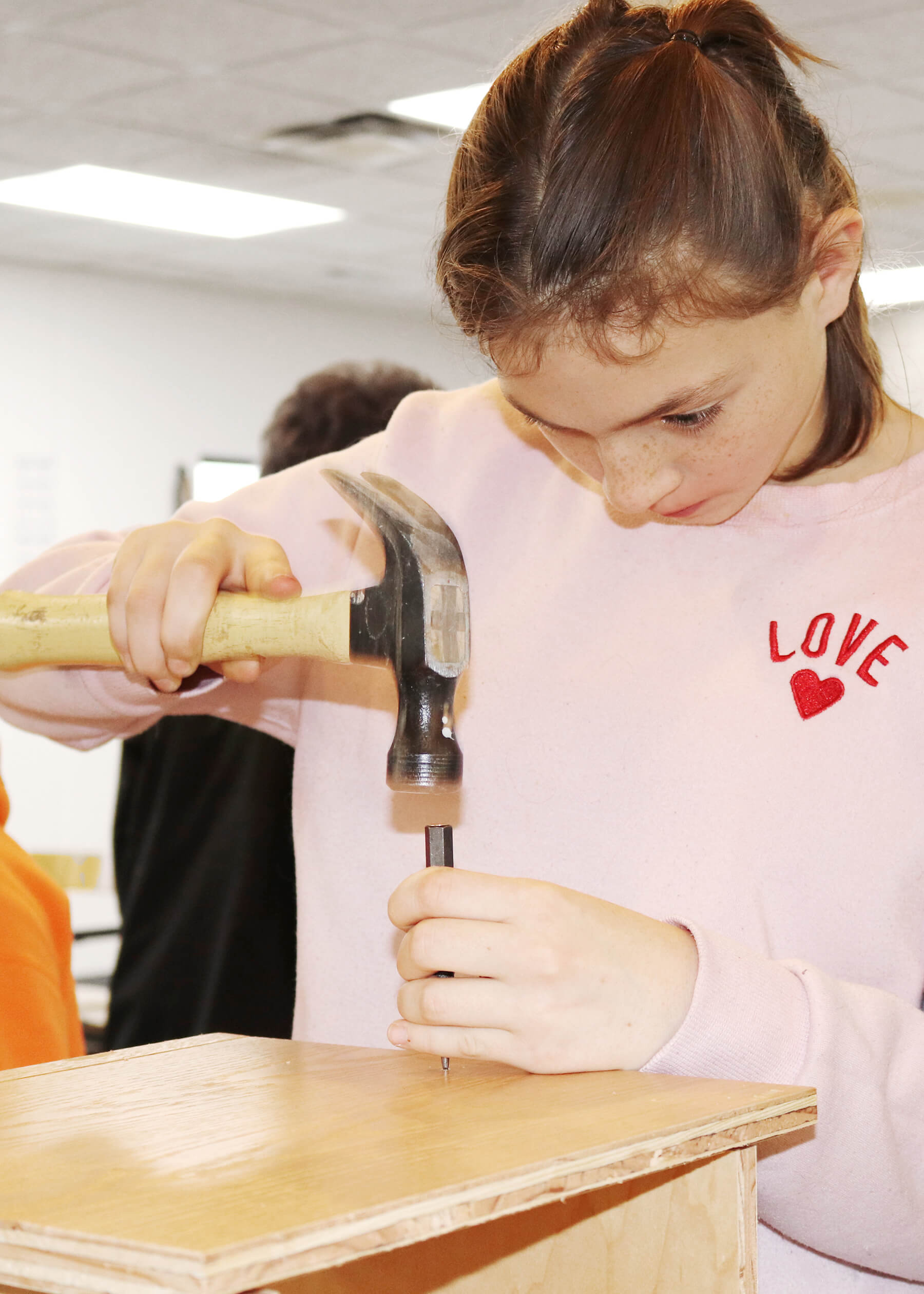 As the project ends, Liz Dennis, the Production Supervisor, gives a presentation on quality. The children learn about the importance of paying attention to details to make a high-quality product. After passing “inspection,” the cabinet is theirs to keep and take home as a memorable keepsake of their day at Dura Supreme!