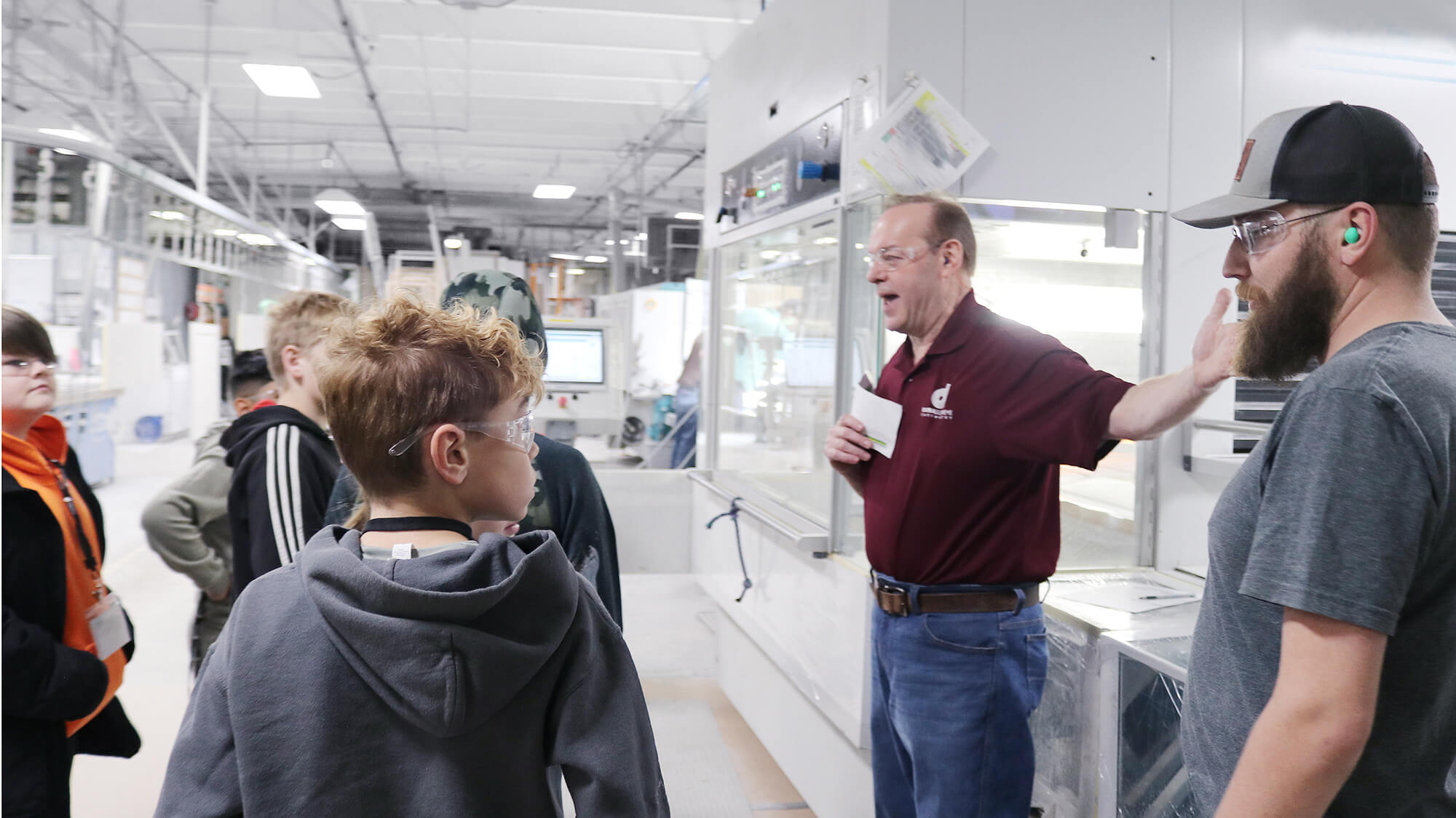 During the tour, every child gets to make a special stop to see their parent or grandparent and hear them explain and demonstrate what their role is at Dura Supreme to the tour group.