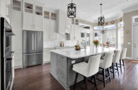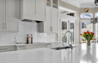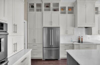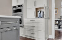 Get ready to fall in love with this stunning kitchen remodel that combines sleek design with classic styling and an inviting atmosphere. The beautiful “Linen White” painted cabinets bring a sense of brightness and airiness to the space, while the Arcadia Panel door style adds a traditional classic touch.